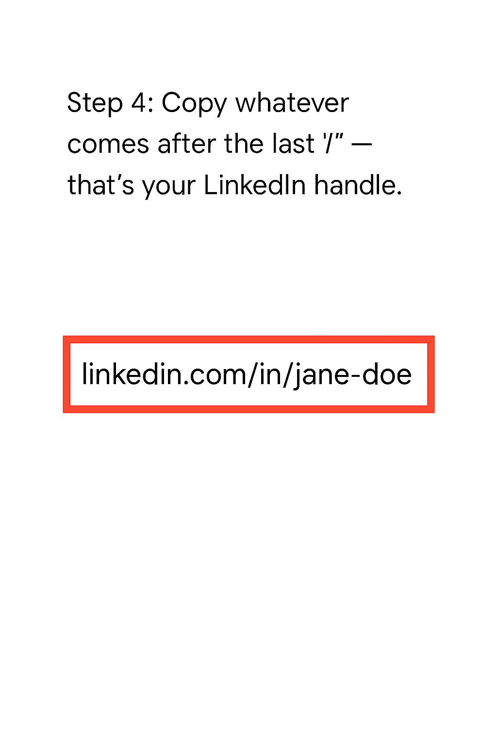 Step 4: Copy whatever comes after the last “/” — that’s your LinkedIn handle.